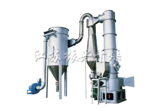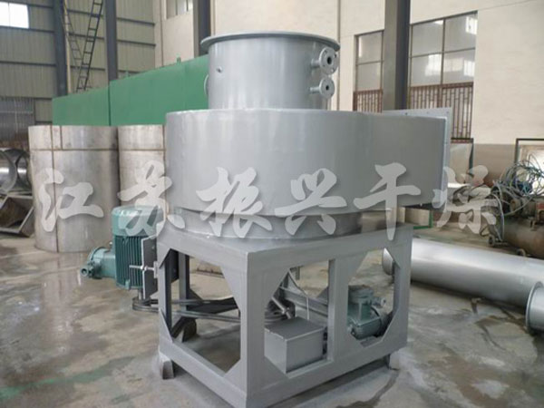 熱空氣切線進入幹(gàn)燥設備底部,在攪拌器帶動下形成強有力的旋轉風場。膏狀物料由螺旋加料器進入幹燥器(qì)內,在(zài)高速旋轉攪(jiǎo)拌槳的強烈作(zuò)用下(xià),物(wù)料受撞擊、磨擦及剪切力(lì)的作用下得到分散,塊狀物料迅速粉碎,與熱空氣充分(fèn)接觸、受(shòu)熱、幹燥。脫水後的幹(gàn)物料隨熱氣流上升,分級環將大顆粒截留,小顆粒從環中心(xīn)排出幹燥器(qì)外,由旋風分離器和除塵器回(huí)收,未幹透或大塊物料受離心力作用甩(shuǎi)向器壁,重新落到底部被(bèi)粉碎幹燥。
