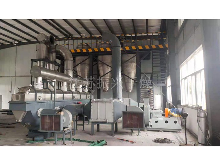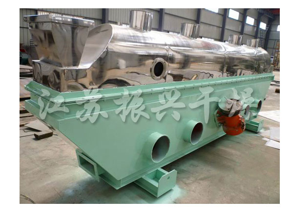 物料自進料(liào)進口(kǒu)進入機內,在振動力作用下,物料沿(yán)水平麵流(liú)化床拋擲,向前連續運動,熱風向上穿過流(liú)化床同濕物料換(huàn)熱後,濕空氣經旋風分離器(qì)除塵後由排風1:3排出.幹燥(zào)物料由排料進口排出。