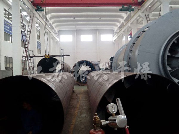 潮濕的物料從筒體一端投入後,在內筒均布的抄板翻動(dòng)下,物料在幹燥機(jī)內被(bèi)均勻分布並分散,並在並流或(huò)逆(nì)流的熱空氣充分接觸,加快了幹燥傳熱、傳質推動力。在幹燥過程(chéng)中,物料(liào)在帶有一定角度的抄板和筒體回轉的作用下,運動至(zhì)幹燥機的另一段連續卸料,尾氣經旋風分離後經引風機排濕。
