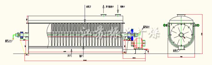 圓盤幹燥(zào)機的空心軸上密(mì)集排列著楔型中空漿葉,熱介質經空心軸(zhóu)流(liú)經(jīng)漿葉。單位有效容積內傳熱麵積很大,熱介質溫度從40℃到320℃,可以(yǐ)是水蒸汽,也(yě)可以是熱水或導熱油等。傳熱介質通過旋轉接頭,流經殼體夾套(tào)及空心攪拌軸,空心(xīn)攪拌軸依據熱介質的類型而具有不同的內部結構,以保證較佳的傳熱(rè)效果。