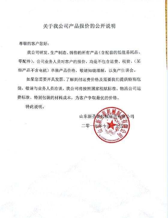 關於我(wǒ)公司產品報價的公開說明